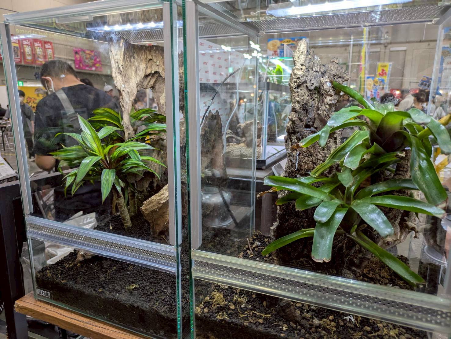 生体を直接見られるだけでなく、新しい飼育用品やインテリアレイアウトの展示もあり、とても参考になります。