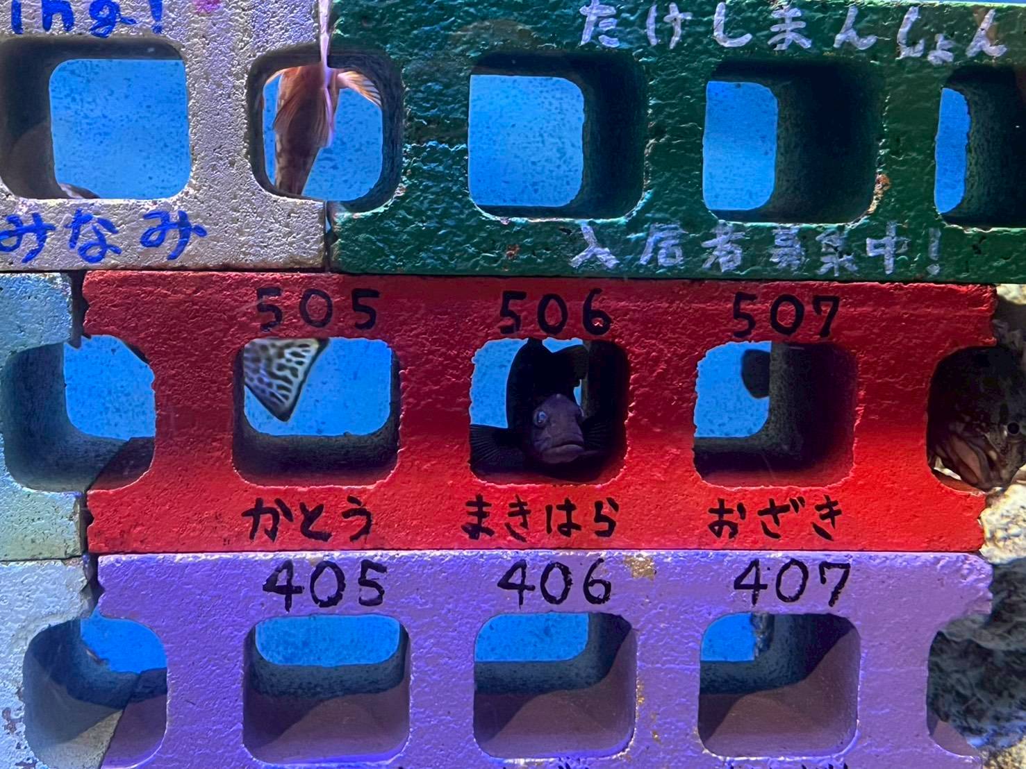 竹島水族館といえば、**有名な「お魚マンション水槽」**や、ウツボがぎゅうぎゅうに集まる水槽など、他の水族館ではなかなか見られないユニークなレイアウトが特徴!