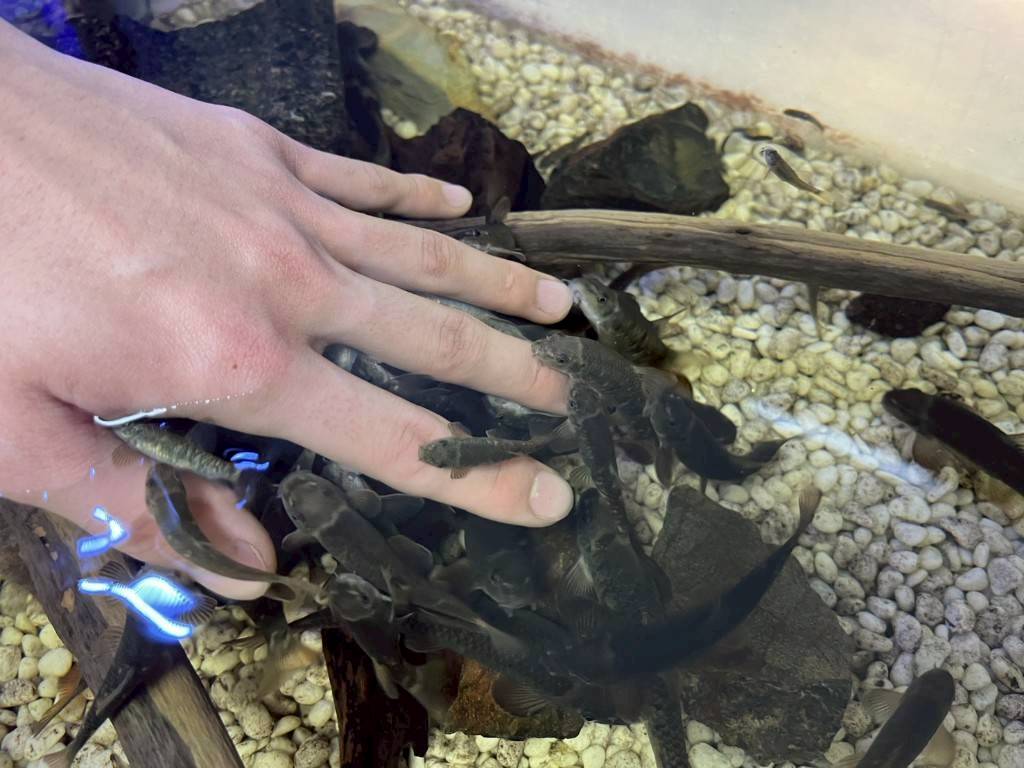 この魚には歯がなく、吸い付くようにやさしく角質を取り除くため、健康な皮膚を傷つけることはほとんどありません。