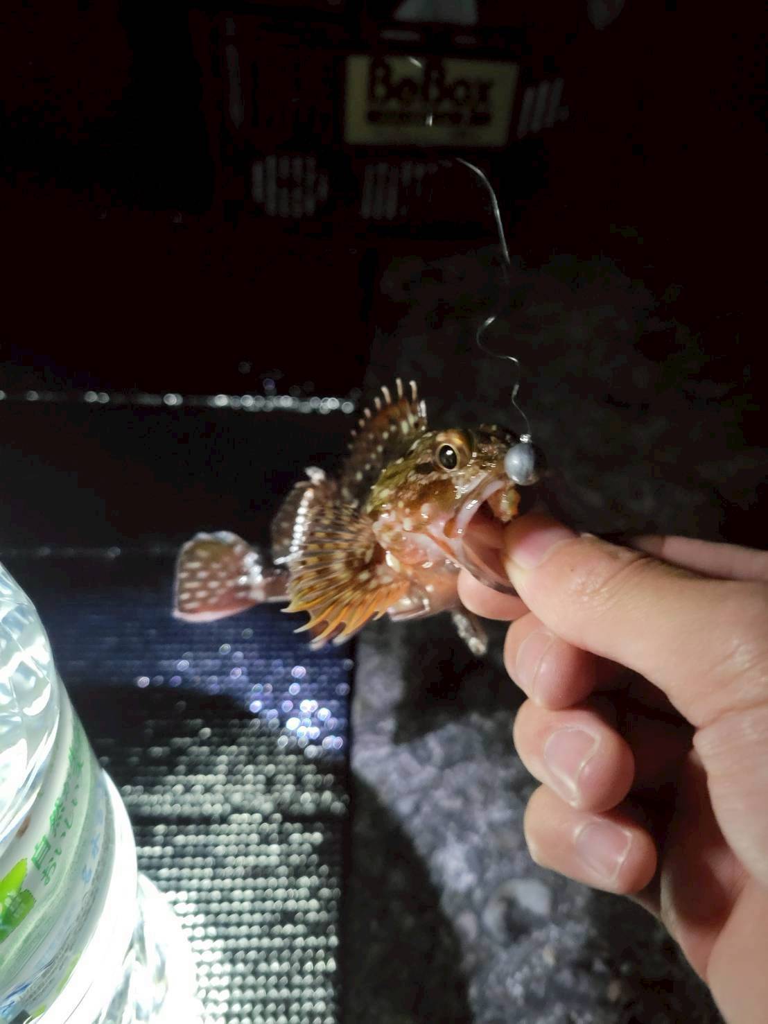 リールを巻いて上げてみると、かわいいサイズのカサゴが釣れました!