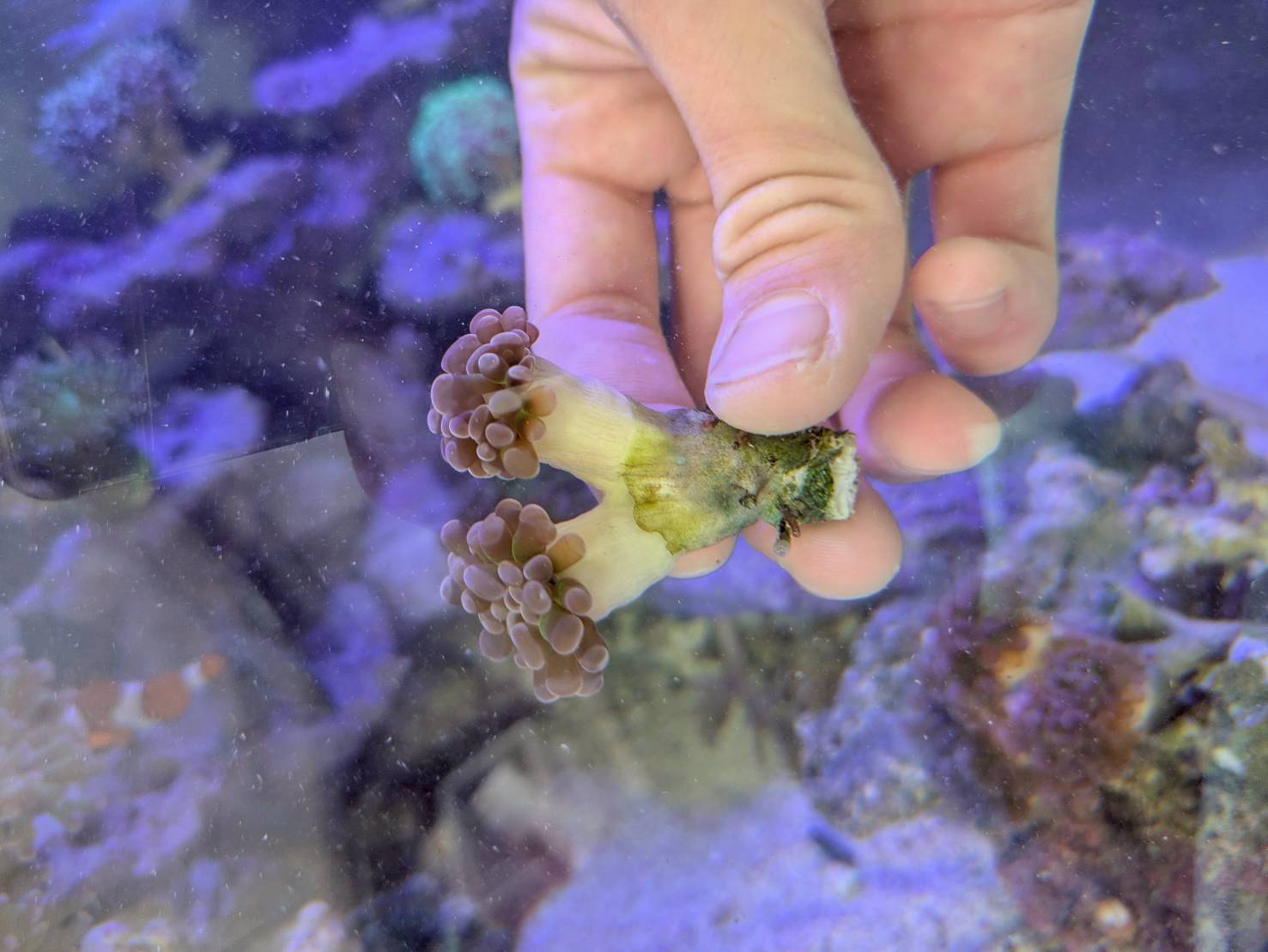 今回は、メンテナンス先のサンゴ水槽で ナガレハナサンゴ の株分け作業を行いました。