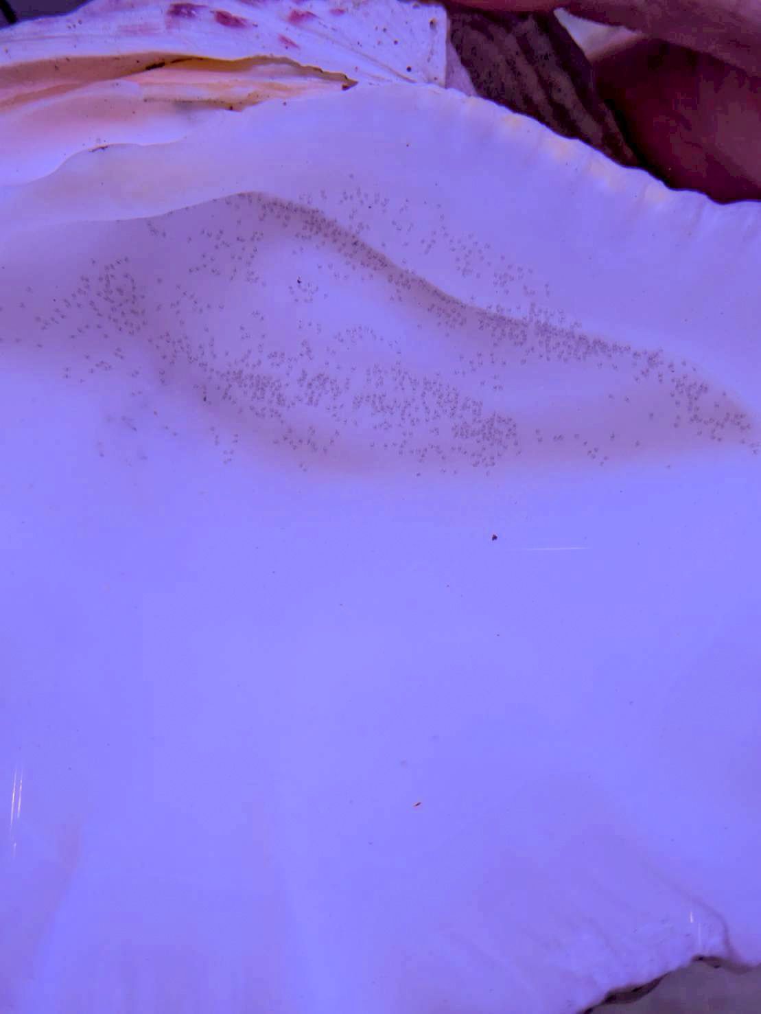 白いシェルにびっしりと付いた小さな粒は、すべて卵です。