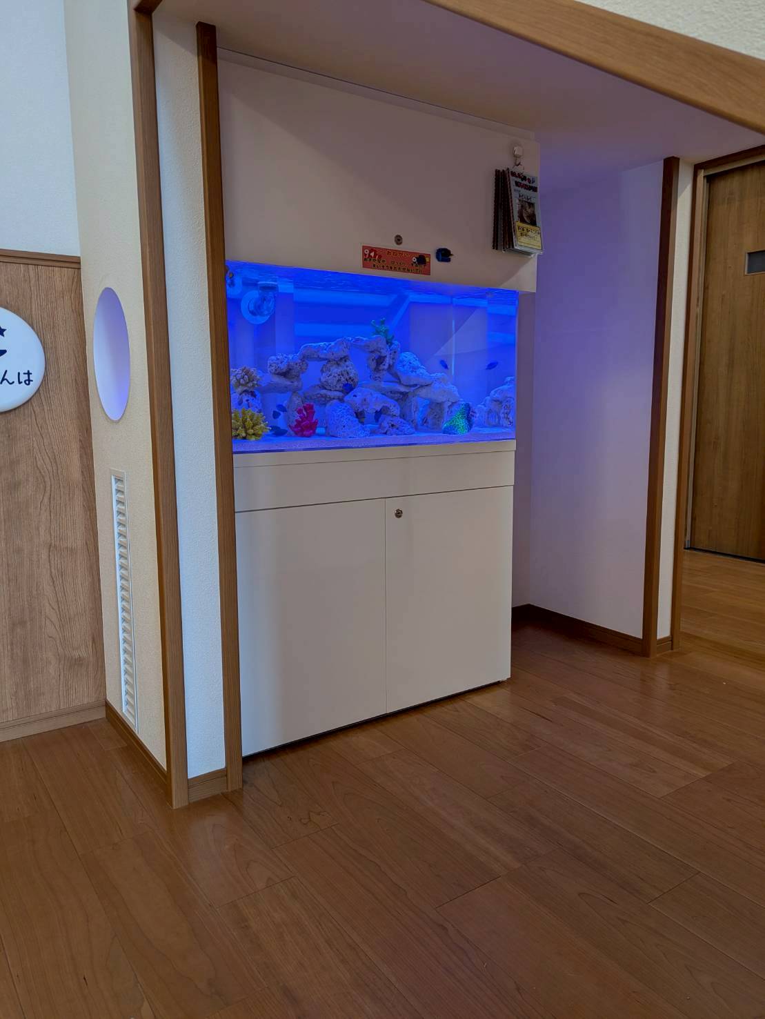 こちらは階段の下に設置させていただいている海水魚水槽です🐟