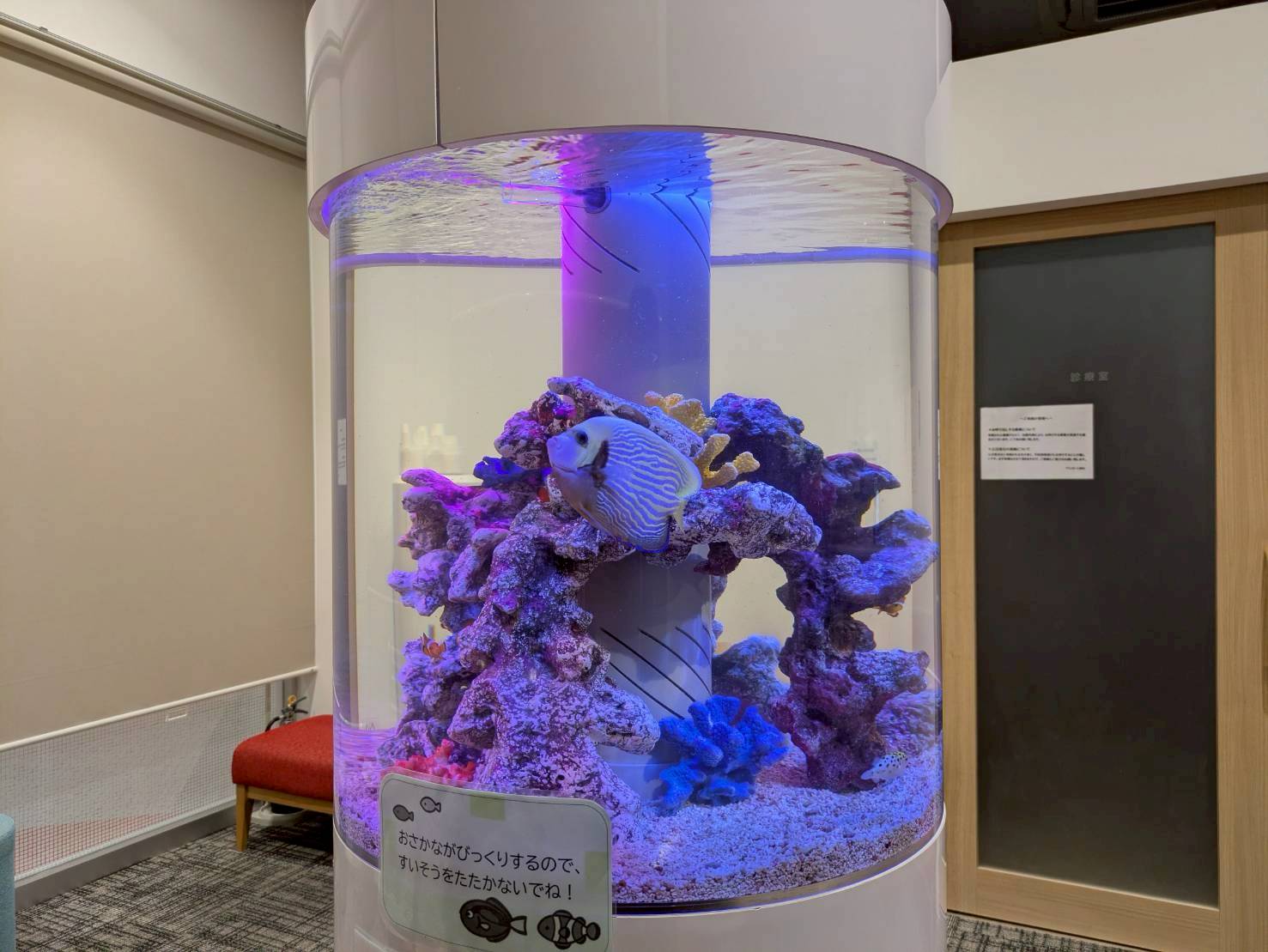 2025.03.09 愛知県 福祉施設に海水魚水槽設置! オーダーメイド水槽 海水魚福祉施設 円柱型海水魚水槽 サイズ:直径60・H60cmジャンル:海水魚 円柱型海水魚水槽設置しました!今回は、めずらしい円柱型の水槽をオーダメイドで制作利用者さんやご家族が2階に上がる際にちょうど通る場所に設置させていただきました。円柱水槽なので360度観賞することができ、ちょっとした団らんの場になってほしいですね!
